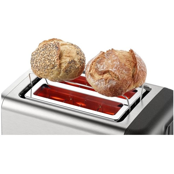 ● توستر فشرده دو شیاره بوش TAT3P420 از جنس استیل ضدزنگ با توان 820-970 وات و کنترل برشته کردن متغیر همراه با تنظیم گرم کردن یکپارچه.