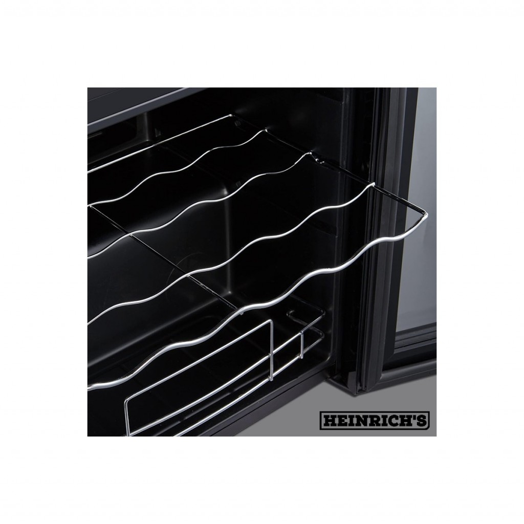 HFK 3216 هنریچ دارای 6 قفسه از جنس استیل ضد زنگ می باشد که به راحتی قابل جابجایی و تمیز کردن هستند. ظرفیت یخچال هنریچ معادل 50 لیتر است به عبارتی دیگر در این یخچال می توان 18 بطری را جای داد و یا قفسه ها را در آورد و مواد غذایی مختلف را قرار داد. در قسمت پایین یخچال یک قفسه به حالت مورب قرار گرفته است تا بطری ها خودنمایی کنند.