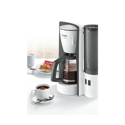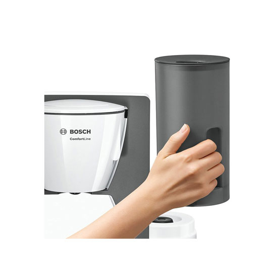«بوش» (Bosch)، یک شرکت بزرگ آلمانی است که از سال 1886 میلادی آغاز به کار کرده است. این شرکت در زمینههای مختلفی از جمله ساخت ابزار و موتورهای صنعتی، سامانههای امنیتی، لوازم برقی خانگی و غیره، فعالیتهای گستردهای دارد. قهوهساز بوش مدل TKA6A041، یک محصول زیبا و ساده است که با ابعاد کوچکش، کارکردن با آن بسیار ساده است. از قابلیتهای این قهوهساز میتوان به دکمهی Aroma+ برای انتخاب رایحهی قهوه، سیستم قطعکن خودکار با امکان انتخاب زمان مورد نظر، فیلتر قابل تعویض، ظرفیت مخزن آب 1.25 لیتری که میتواند برای ۱۰ تا ۱۵ فنجان قهوه تولید کند و سیستم ضدچکه اشاره کرد. این محصول که وزن آن به ۱.۸ کیلوگرم میرسد، میتواند بهسرعت یک قهوهی مناسب با کیفیت بالا برای کاربران فراهم کند. همچنین برنامهای به نام EasyDescale 3 دارد که رسوبزدایی میکند و میتوان میزان سختی آب را انتخاب کرد. لازم به ذکر است که محفظهی اصلی این قهوهساز قابل جدا شدن است. این محصول نگهداری آسانی هم دارد و دارای محفظهی مخصوص برای جمعکردن سریع کابل است. این موضوع میتوان استفاده از این محصول را بسیار آسانتر کند.