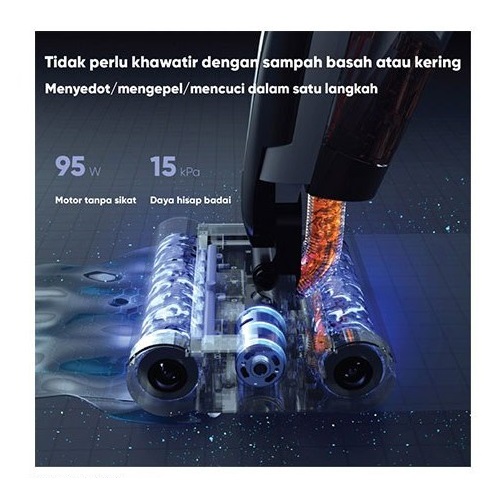 جارو شارژی شیائومی مدل VX96W جاروی آب و خاک شارژی برند deerma از زیر مجموعه های شرکت شیائومی می باشد که مزیت اصلی این جارو به مدل های مشابه این است که به صورت همزمان هم کار جارو برقی های کلاسیک را انجام میدهد و هم کار طی کشیدن رو برای شما انجام میدهد این جارو با بهره گیزی از دو براش مجزا و مخزن مجزا برای آب تمیز و آب کثیف تمیزی فوق العاده ای به خونه شما میده.همچنین برای تمیز کردن براش های جارو کافیست تا اون رو به روی پایه مخصوصش قرار بدین تا به صورت اتوماتیک براش های جارو تمیز بشند.این جارو با هر بار شارژ 30 دقیقه توان کارکرد روی حداقل قدرت کاریش رو داره که برای یک خونه 150 متری مقدار شارژ دهی مناسبی به حساب میاد.یگی دیگه از نقاط قوت این جارو بهره گیری از لبه بسیار باریک به ضخامت 6 میلیمتر می باشد که لبه های دیوار رو به خوبی تمیز میکنه.این جارو از قدرت مکش 15 هزار پاسکالی برخورداره که برای یک جاروی شارژی بسیار مناسب می باشد.همچنین این جارو از سیستم استریلیزه کردن آب بهره میبره که باعث میشه از بابت باکتری های موجود در آب خیال شما راحت بشه.