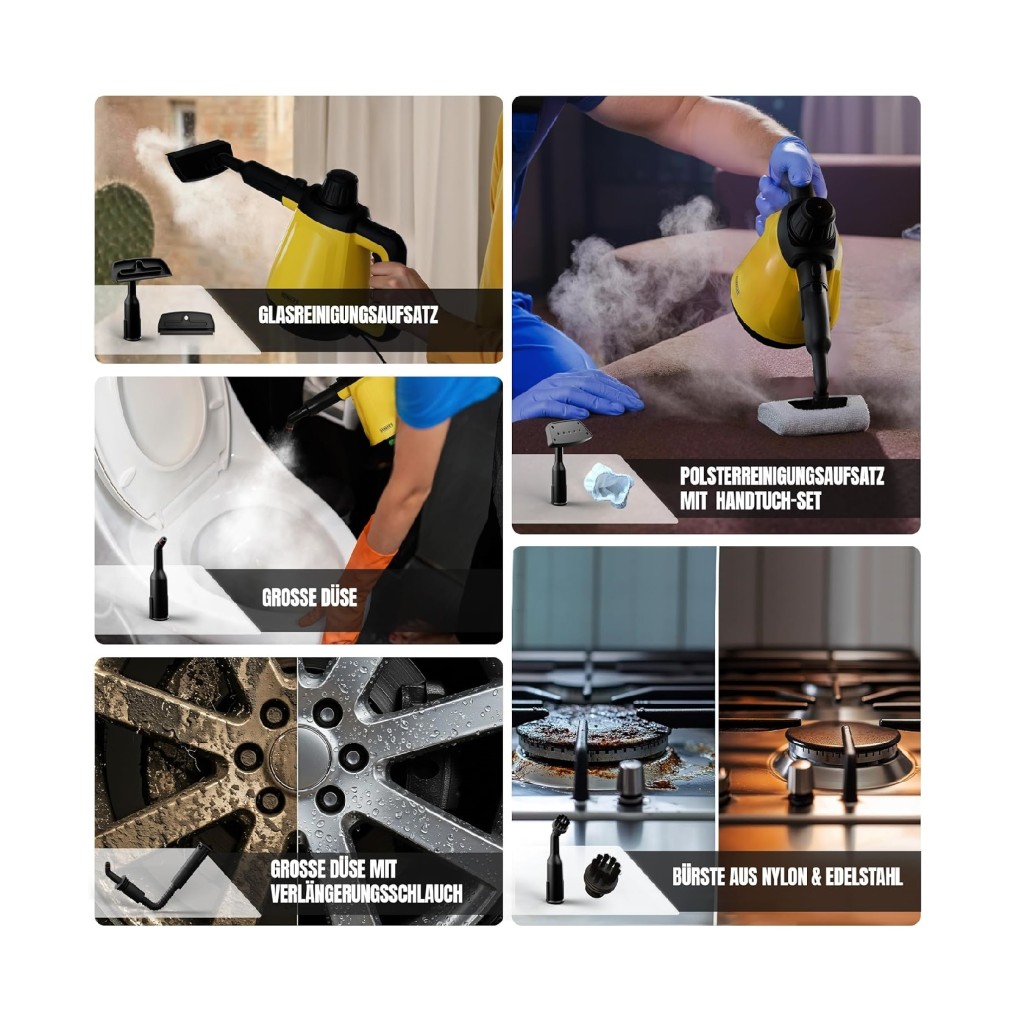 مزیت مهم این مدل داشتن سریهای مختلف است؛ سری باریک برای گوشهها و نقاطی که دسترسی سخت دارند، سری پهن برای کف و دیوار، و سری مخصوص پارچه برای مبل و پرده. همین تنوع باعث میشود یک دستگاه برای کل خانه کافی باشد. طراحی سطلی و وجود چرخهای روان هم حمل و جابجایی آن را ساده کرده و سیستم ایمنی قطع خودکار خیال کاربر را راحت میکند. در نتیجه، بخارشوی هنریچ 8734 انتخابی مناسب برای کسانی است که میخواهند با یک دستگاه جمعوجور، نظافت کامل و ضدعفونی خانه را انجام دهند.